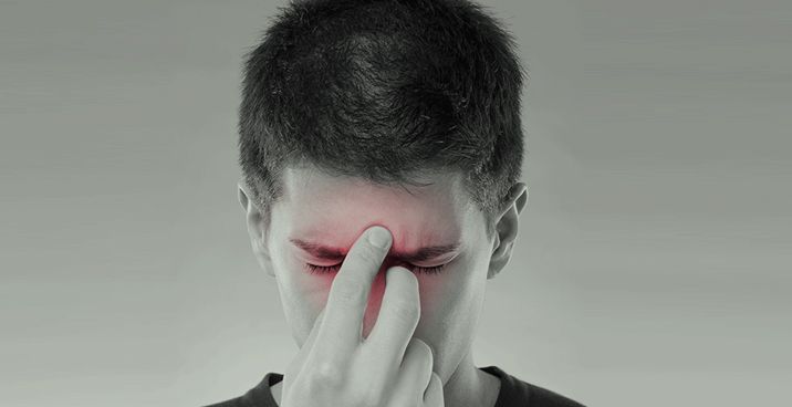 Branches of the nasal nerves also send sensation to the eyes, up the forehead, cheeks, head and the roof of the mouth. The nerves most commonly involved are the anterior and posterior ethmoidal nerves which have branches serving the eye, the forehead and the same side of the head. Pressure on this nerve leads to pain on the same side of the nose radiating up the forehead and top of the head. This is known as referred pain and it mimics one-sided migraine.